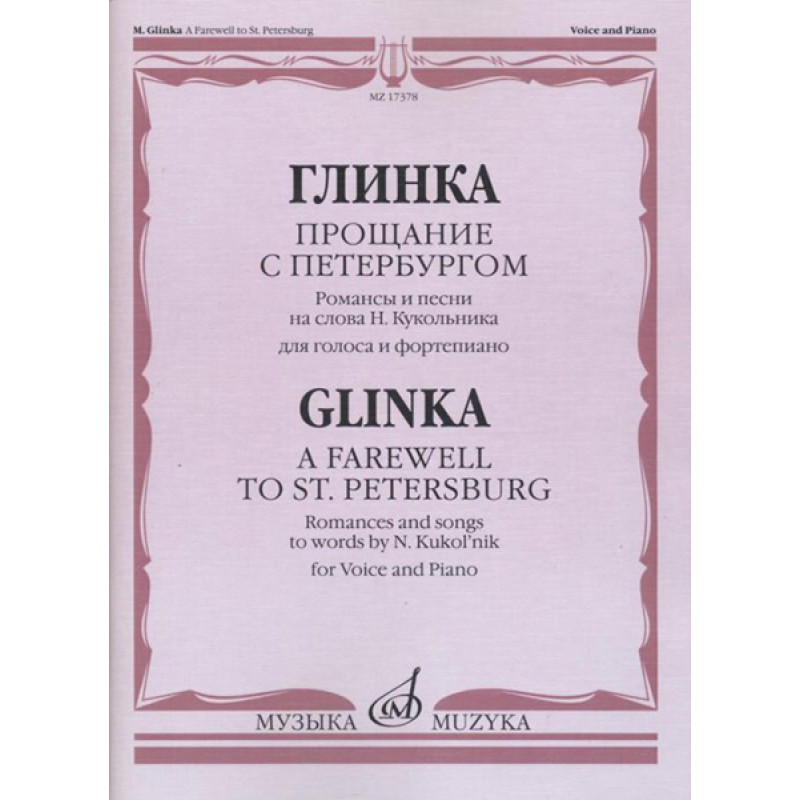 17378МИ Глинка М. И. Прощание с Петербургом. Романсы и песни на сл. Н.Кукольника. Для голоса и фортепиано, издательство "Музыка" Москва