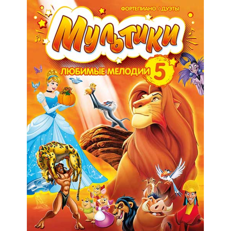 В пятом выпуске из серии сборников "Мультики" публикуются переложения для фортепиано в 4 руки песен и инструментальных номеров, звучавших в популярных мультфильмах. Яркие и мелодичные пьесы помогут вспомнить сказочные миры известных мультфильмов "Король-лев", "Золушка", "Мэри Поппинс", "Похождения императора" и многих других. Краткие методические комментарии к пьесам окажут помощь в освоении художественных и технических задач.