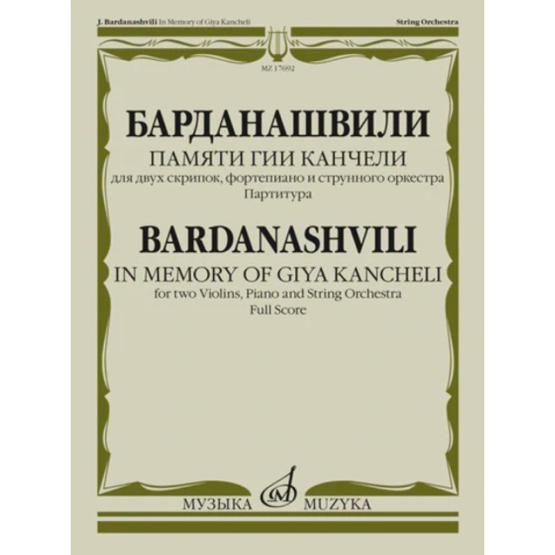 17692МИ Барданашвили, И. Памяти Гии Канчели. Для двух скрипок, фортепиано и струнного оркестра. Партитура, издательство "Музыка" Москва
