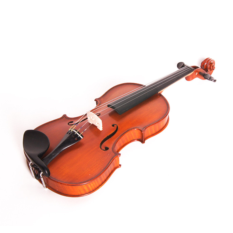 Изготовленный вручную инструмент с верхней декой из массива ели, кленовой задней декой и обечайками и деревянным кантом. Колки, накладка грифа, подбородник и струнодержатель из черного дерева. Инструмент вручную покрыт масляным лаком.