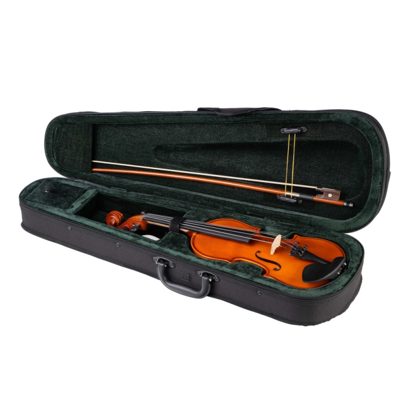 FLT-VP1/4 Скрипка ученическая в комплекте, верхняя и нижняя деки из ламината, гриф из клена, накладка грифа - ююба, смычок, канифоль и жесткий футляр в комплекте. Fleet