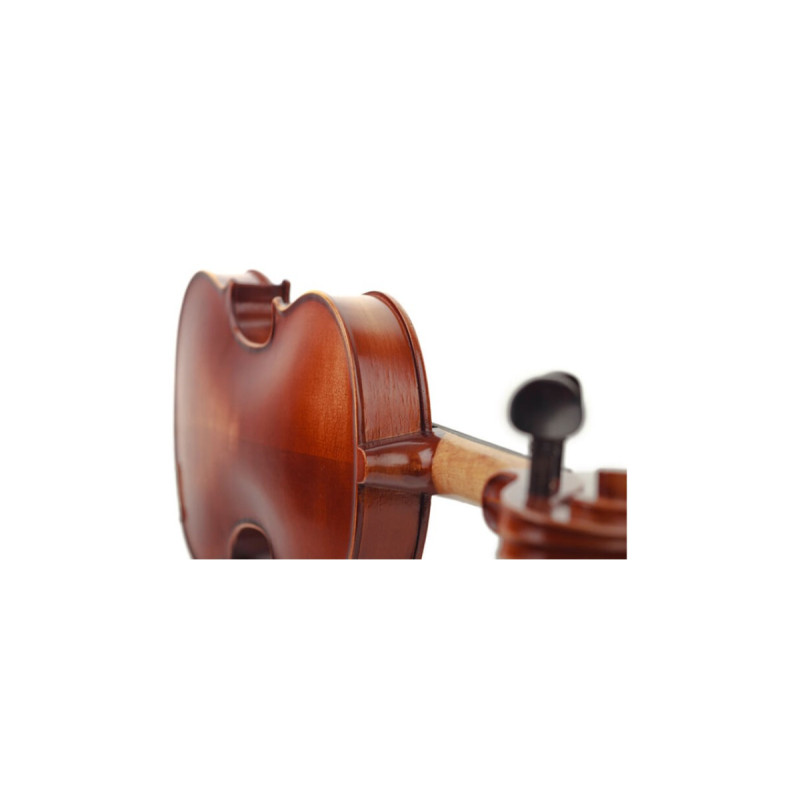 Материал Верхняя дека изготовлена из дерева ели, поэтому имеет превосходный звуковой баланс и мягкое звучание. Корпус изготавливается из клена, поэтому звук имеет динамический, объемный характер. Гриф изготовлен из клена, а накладка - палисандровое дерево. Струнодержатель и подбородник выполнены из черного бакелита. Подбородник достаточно удобный, поэтому с скрипкой Prima комфортно тренироваться в течение долгого времени, что идеально подойдет для учеников.
