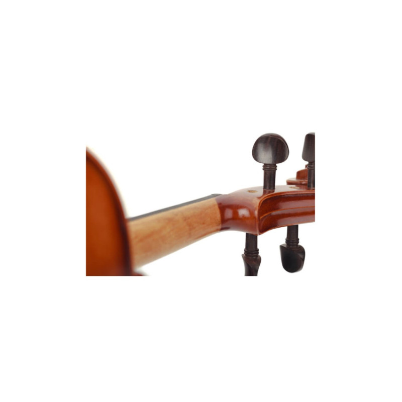 Материал Верхняя дека изготовлена из дерева ели, поэтому имеет превосходный звуковой баланс и мягкое звучание. Корпус изготавливается из клена, поэтому звук имеет динамический, объемный характер. Гриф изготовлен из клена, а накладка - палисандровое дерево. Струнодержатель и подбородник выполнены из черного бакелита. Подбородник достаточно удобный, поэтому с скрипкой Prima комфортно тренироваться в течение долгого времени, что идеально подойдет для учеников.