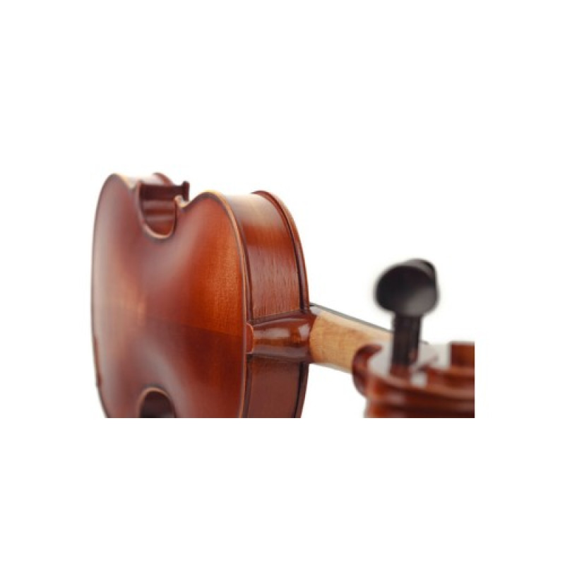 Материал Верхняя дека изготовлена из дерева ели, поэтому имеет превосходный звуковой баланс и мягкое звучание. Корпус изготавливается из клена, поэтому звук имеет динамический, объемный характер. Гриф изготовлен из клена, а накладка - палисандровое дерево. Струнодержатель и подбородник выполнены из черного бакелита. Подбородник достаточно удобный, поэтому с скрипкой Prima комфортно тренироваться в течение долгого времени, что идеально подойдет для учеников.