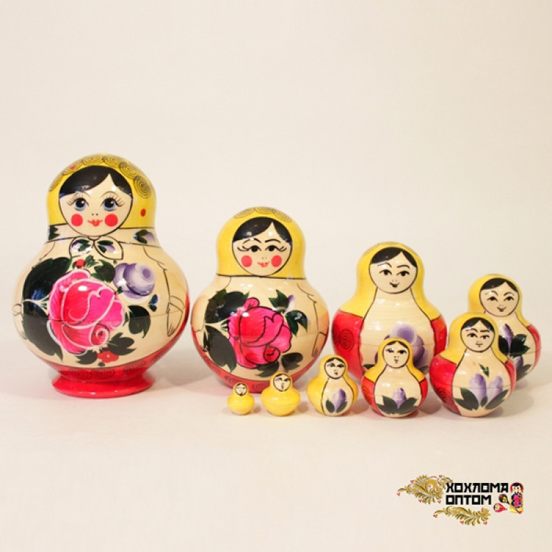 LHM10120 Матрешка традиционная "Фонарик" 10 кукольная, Хохлома