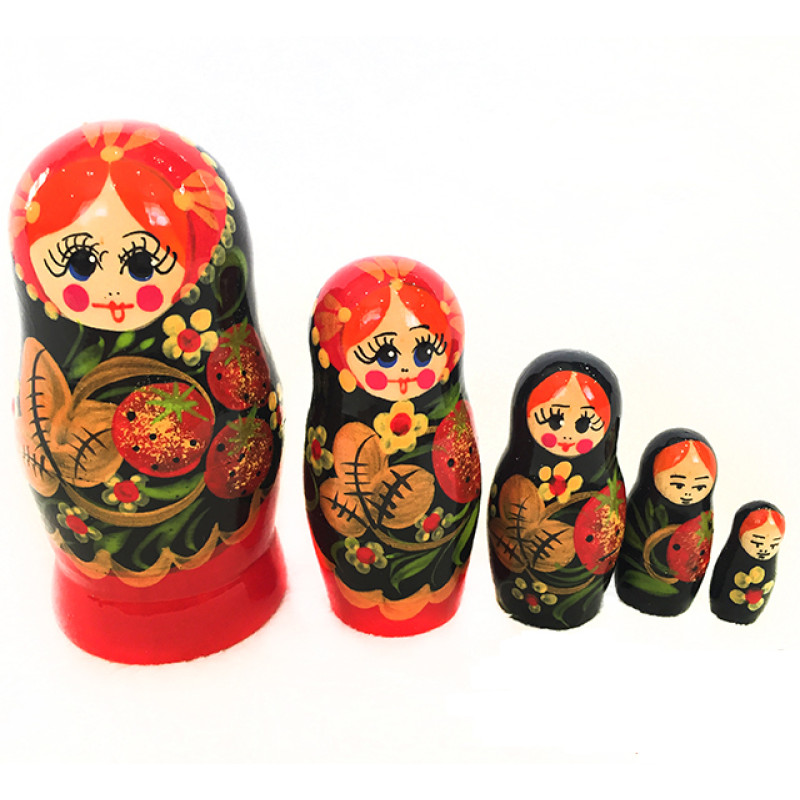 LHM10199 Матрешка "Земляничка" 5 кукольная, Хохлома