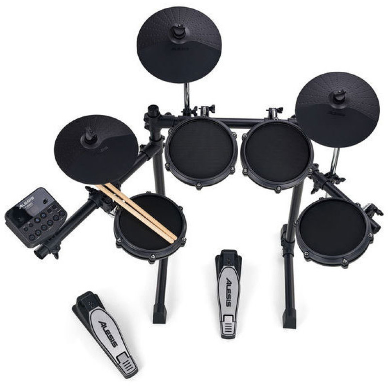 Alesis Turbo Mesh Kit - это полноценная барабанная установка с 8" сеточным пэдом малого барабана, тремя 8" сеточными пэдами томов, тремя 10" пэдами тарелок, разработанными Alesis педалями хай-хета и бас-барабана и прочной и легкой алюминиевой рамой. Все необходимое идет в комплекте - просто собери ее и начни играть!