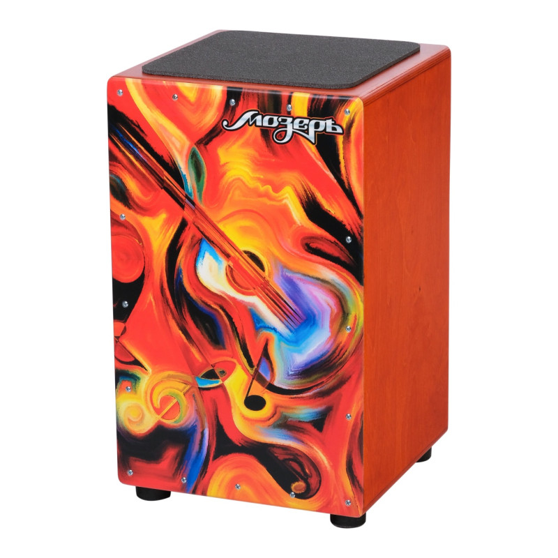 Кахон с глубоким басовым звучанием в сочетании с тонким звуком гитарных струн, резонаторная сторона из березы 3мм, регулируемая система натяжения струн, цвет корпуса оранж, тапа с принтом фламенко.