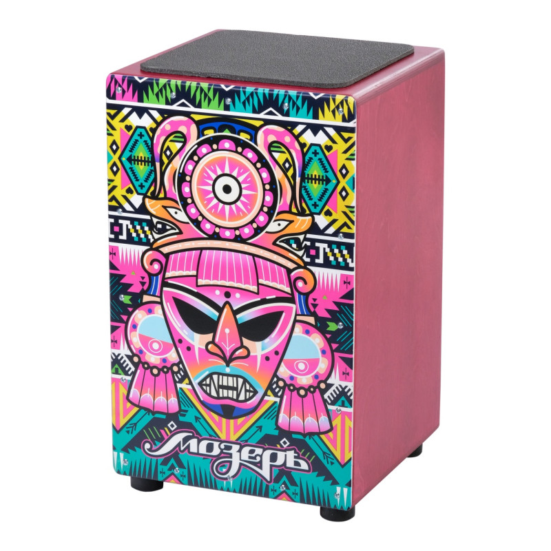 Кахон с пружинами в березовом корпусе для насыщенного басового звучания, резонаторная сторона из березы 3мм, цвет корпуса черный, тапа с принтом блюз.