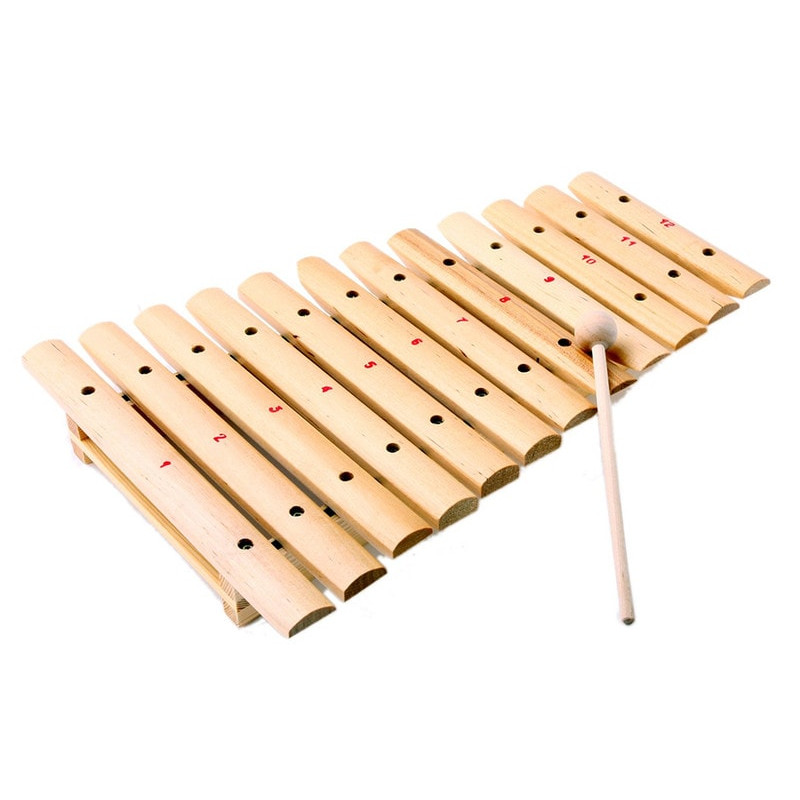 Ксилофон — ударный деревянный музыкальный инструмент с деревянными планками, разными по величине и настроенными на определенные ноты. По планкам ударяют палочками с шарообразными наконечниками. Ударяя палочками по планкам, ребенок учится создавать различные мелодии.