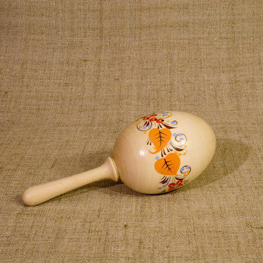 Пустотелая деревянная погремушка яйцеобразной формы.