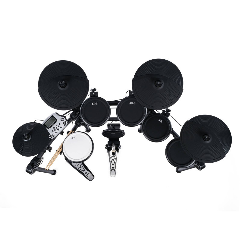 SD230 — цифровая установка среднего класса, оснащенная 6 пэдами барабанов и 4 пэдами тарелок, яркое живое звучание подойдет как для репетиций, так и для живых выступлений.