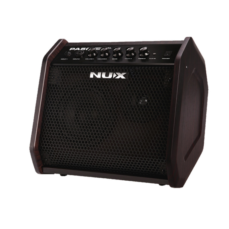 NUX PA-50 - это многоцелевой двухканальный монитор мощностью 50 Вт, с чувствительным динамиком 6,5" и 1" твитером.