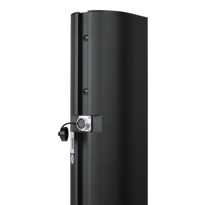 Корпус системы изготовлен из алюминия, что обеспечивает компактность и небольшой вес (10 кг), облегчая транспортировку и установку. Горизонтальный угол охвата фиксирован и составляет 130 градусов, а смещение фокуса можно регулировать в диапазоне от 5 до 50 м.