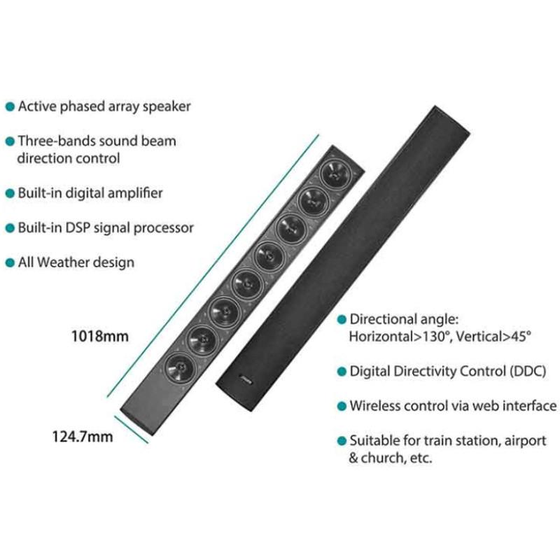 8 полнодиапазонных динамиков с широким частотным диапазоном.Встроенный высокопроизводительный запатентованный алгоритм подавления боковых лепестков диаграммы направленности.