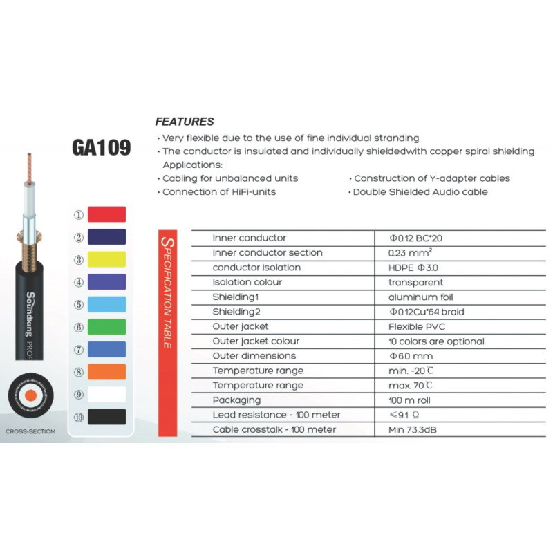 GA109-10 Кабель инструментальный, 100м, бесшумный, Soundking