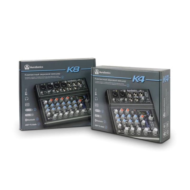 Аналоговые микшеры AuraSonics K4 и K8 созданы для широкого круга применения. Это могут быть репетиции, звукозапись, выступления перед аудиторией, стримы, монтаж видео и просто воспроизведение музыки.