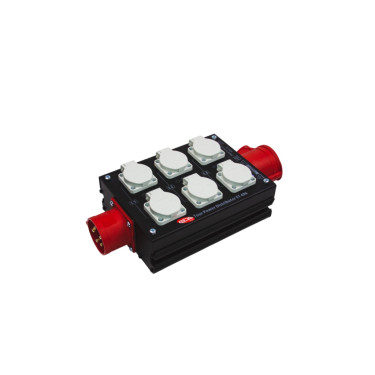 Осуществляет коммутацию от входного разъема PCE CEE32A 5-pol. IP44 до встраиваемых розеток PCE Schuko 16A по две на каждую фазу, а также сквозная коммутация до выходной розетки PCE CEE32A 5-pol. IP44.