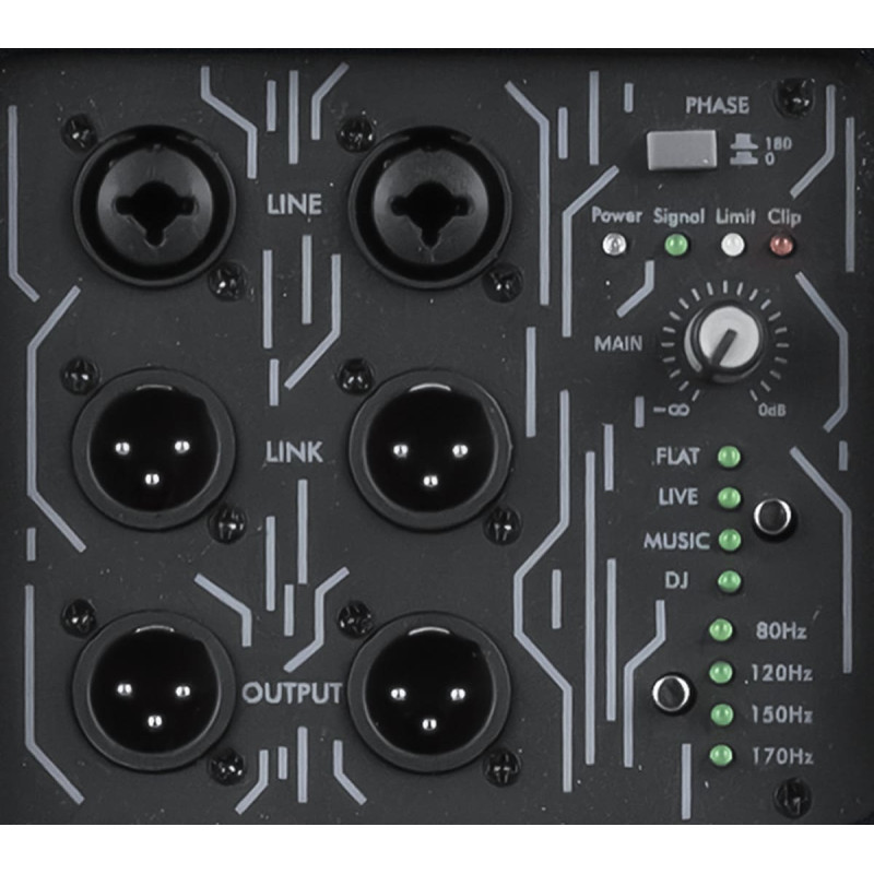 Аудио разъемы - 2 XLR\jack 6.3 input, 2 XLR link (паралельные), 2 XLR output (c учетом обрезки кроссовера)