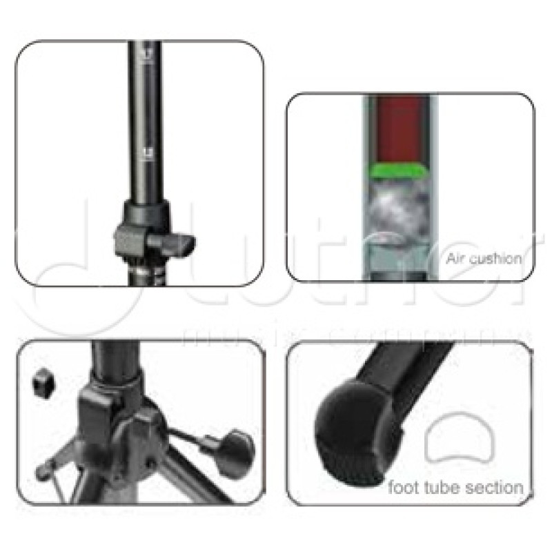 Пневматический амортизатор предотвращает резкое опускание акустической системы, повышая безопасность.